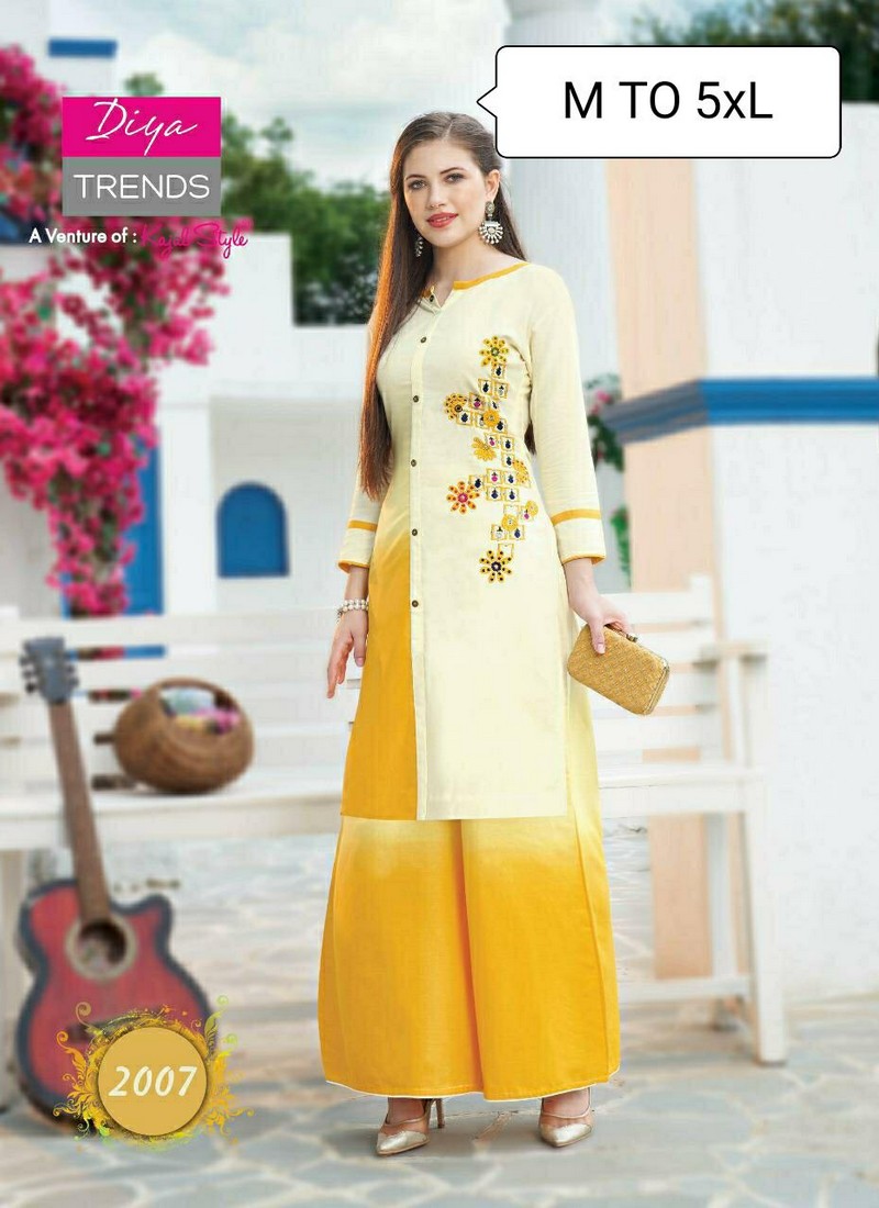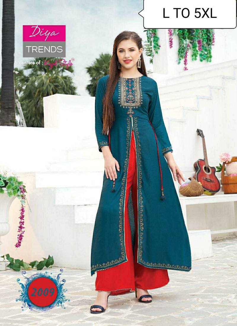 Description : Fashion Angel Daily Wear Kurti With Plazzo, Sharara & Skirt Pair Fancy Embroidery Work